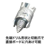 ●先端ドリル形状と切削爪で直接ボードに穴あけ可能