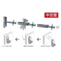 ●下穴から水平に差し込んで、壁裏側の本体が垂直に立ち、壁面と取付物をしっかり固定することができる