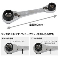 ●インナーソケットでサイズ切替可能 8サイズOKのソケットレンチ、ショートタイプ