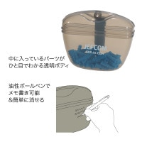 ●中に入っているパーツが、ひと目でわかる透明ボディ